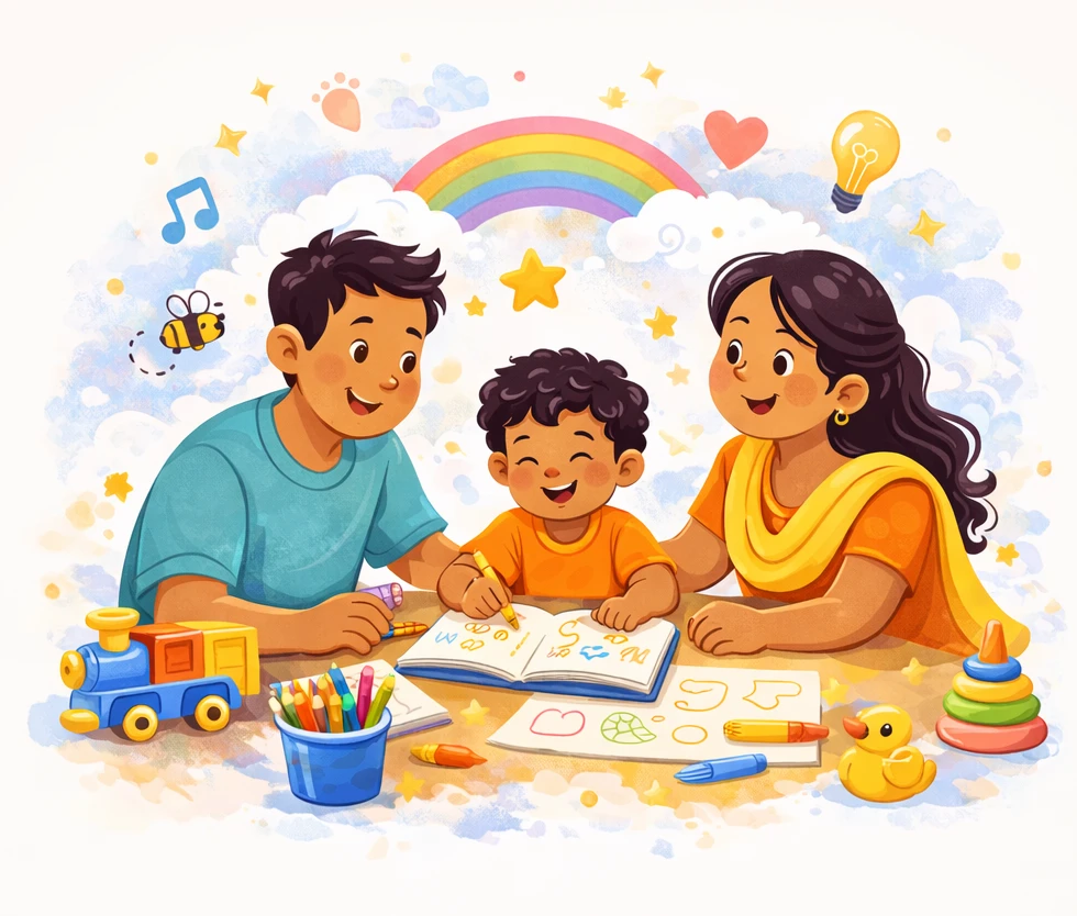 Our mission is to empower Indian parents of children aged 2 to 4 years with a structured, joyful, research-backed homeschooling programme that nurtures every dimension of early childhood — cognitive, emotional, social, physical, and creative.We are committed to: